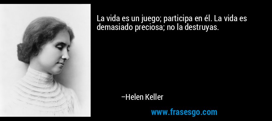 La vida es un juego; participa en él. La vida es demasiado preciosa; no la destruyas.